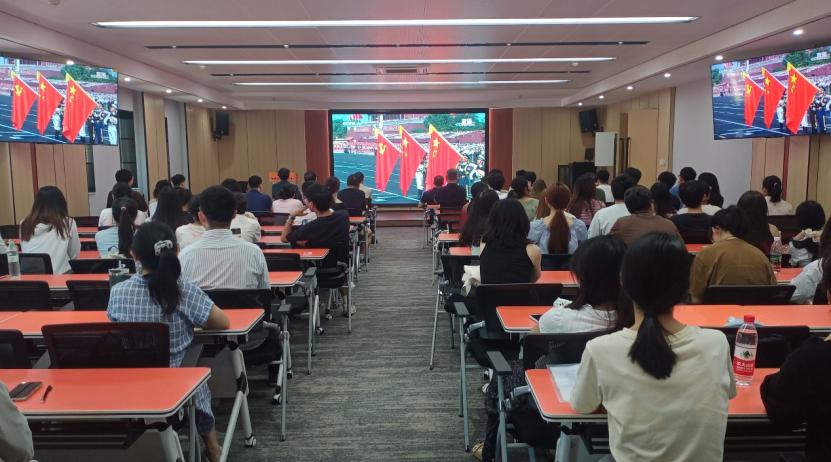 观看过程中,大家神情专注,认真聆听习近平总书记的重要讲话,共同铭记抗战历史,缅怀革命先烈。此次集体观礼进一步激发了师生的爱国热情与使命担当,学院师生纷纷表示将以实际行动传承和弘扬伟大抗战精神,践行"公行天下、卫戍健康"的初心使命,为健康中国建设贡献自身力量。